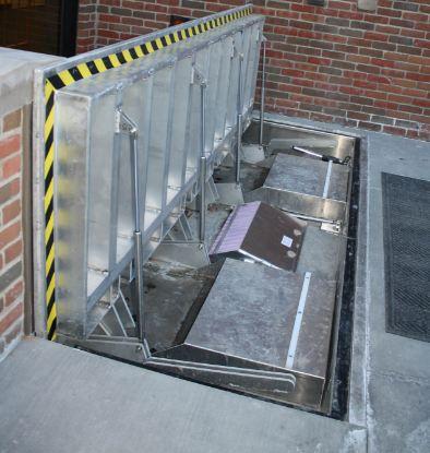 2. Môi trường mài mòn cao: các lối đi có cát sỏi, rác nhiều: Sẽ có Cửa Chống Ngập kèm "chổi " tự vệ sinh khi vận hành